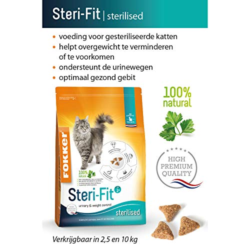 Fokker Steri-Fit è un alimento completo di alta qualità per gatti adulti con tendenza al sovrappeso o sterilizzati. Un gatto sterilizzato ha esigenze nutrizionali specifiche diverse rispetto a un gatto non sterilizzato.