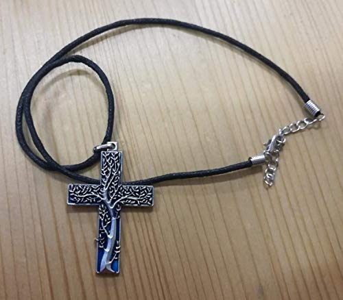 Croce Albero della Vita Azzurro - Pendente placcato argento con collana - Idea Regalo portafortuna per donna, pensierino augurio di buona vita, matrimonio, gravidanza, nascita - Ciondolo H 4,8 cm
