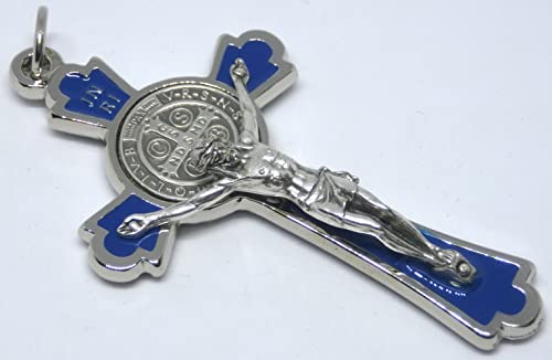 10.578.11 croce di san benedetto sagomato argento smaltato a mano misura 8 cm esorcista esorcismo blu