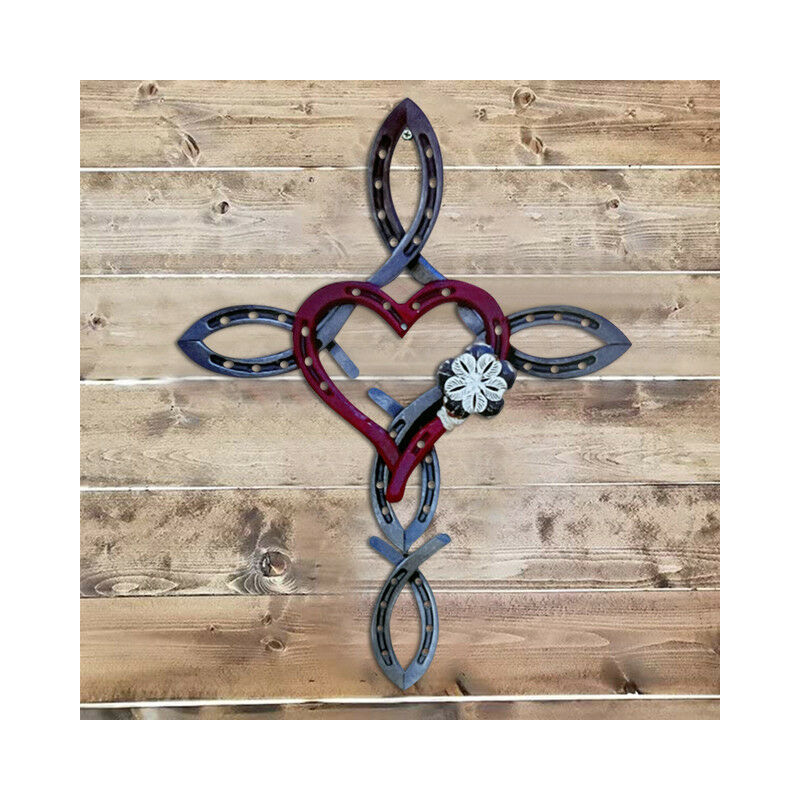 Cavallo croce con cuore in metallo Wall Art ferro di cavallo croce Patio esterno decorazioni per la casa DESIGN significato - cuori intrecciati per sempre sotto l'occhio vigile di dio. Materiale - questa croce a ferro di cavallo è realizzata in metallo ed è fatta a mano, ciascuno è unico, che può portare fortuna ad amare! Regalo squisito - questo è il miglior anniversario, fidanzamento, matrimonio e regalo di san valentino per le persone che vuoi regalare. Croce di cavallo naturale con cuore - il ferro di cavallo è a forma di luna crescente, che simboleggia il creatore della vita e l'immagine di una grande madre. Servizio di soddisfazione - puniamo al 100% di soddisfazione del cliente. Siamo felici di fornire prodotti di alta qualità e il miglior servizio clienti.