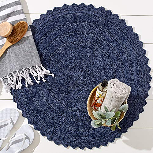 DII Crochet Collection - Tappetino da bagno reversibile, rotondo, diametro 69,8 cm, colore: Blu francese
