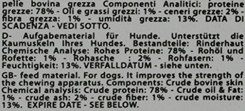 CONTENUTO: Una confezione contiene 5 snack per cani da 25g, di dimensioni 7,5 cm.