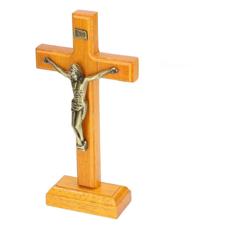 Crocifisso decorazione crocifisso cattolico con Base per la casa per Desktop per Caratteristica: 1. Decorazione: le croci adornano la tua casa o sul posto di lavoro per esprimere una fede sicura.2. Facile da installare: gesù fatto a mano, è necessario installarlo facilmente da solo.3. Gifts: usa il di gesù come regalo religioso per la famiglia e gli amici che sono vicini dalla fede.4. Materiale: realizzato in legno di faggio e metallo di alta qualità, è altamente lucidato per mani eccellenti e alta qualità.5. Applicabilità: ottimo per la visualizzazione su uno scaffale o su una mensola come pezzo decorativo. Specifica: Tipo dell'articolo: CrocifissoMateriale del prodotto: legno di faggio, metalloUso del prodotto: adatto per la decorazione del Desktop, regali religiosi, ecc.Dimensioni del prodotto: approvazione. 7.5x4x19.5cm / 3x1.6 x 7.7in Cornici E Articoli Da Esposizione Lista: 1 x Crocifisso 1 x di Base