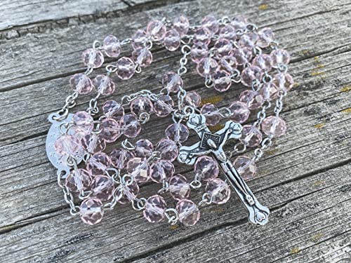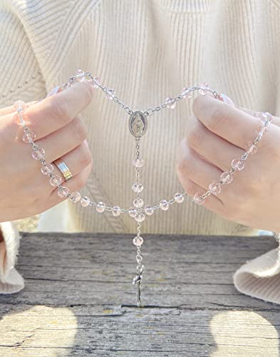Crocifisso & luce in cristallo rosa perline Rosario cattolico collana medaglia miracolosa