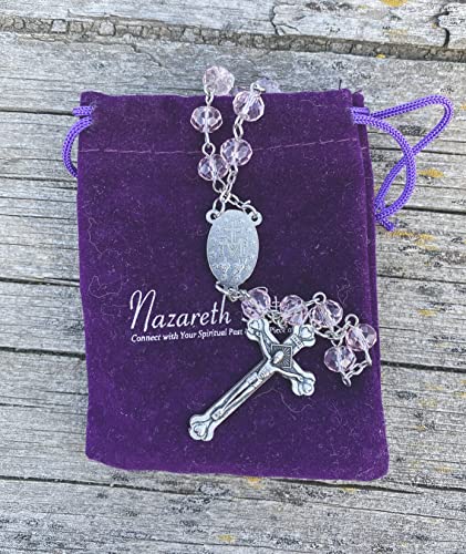 Rosario Lunghezza 18 "/ 46 cm croce misura 1,6" perline 8 mm con sacchetto di velluto Nazareth Store viola