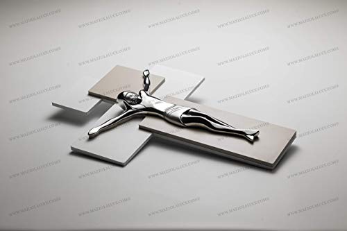 CROCIFISSO Parete Moderno 17X12 Croce Tortora Bianco Cristo Cromo me12101n
