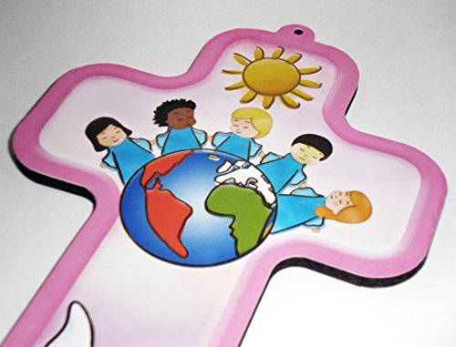 Crocifisso da Parete ROSA - Bambini Intorno alla Terra - Pace e Calma