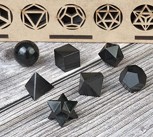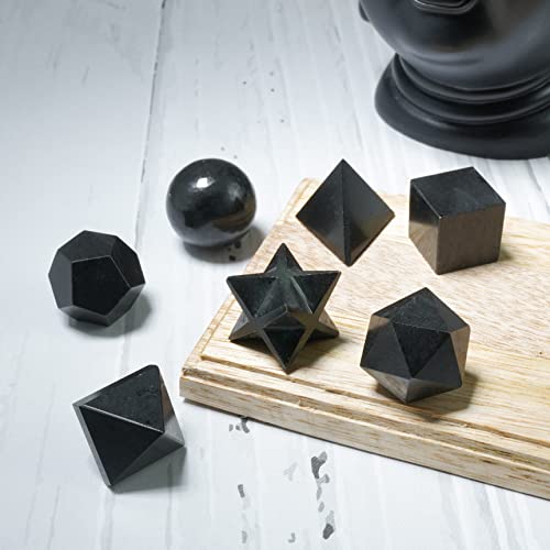 Crocon Black Tourmaline Sacred 7 PCS Geometric Set Stone for Meditation Crystal Healing Grids