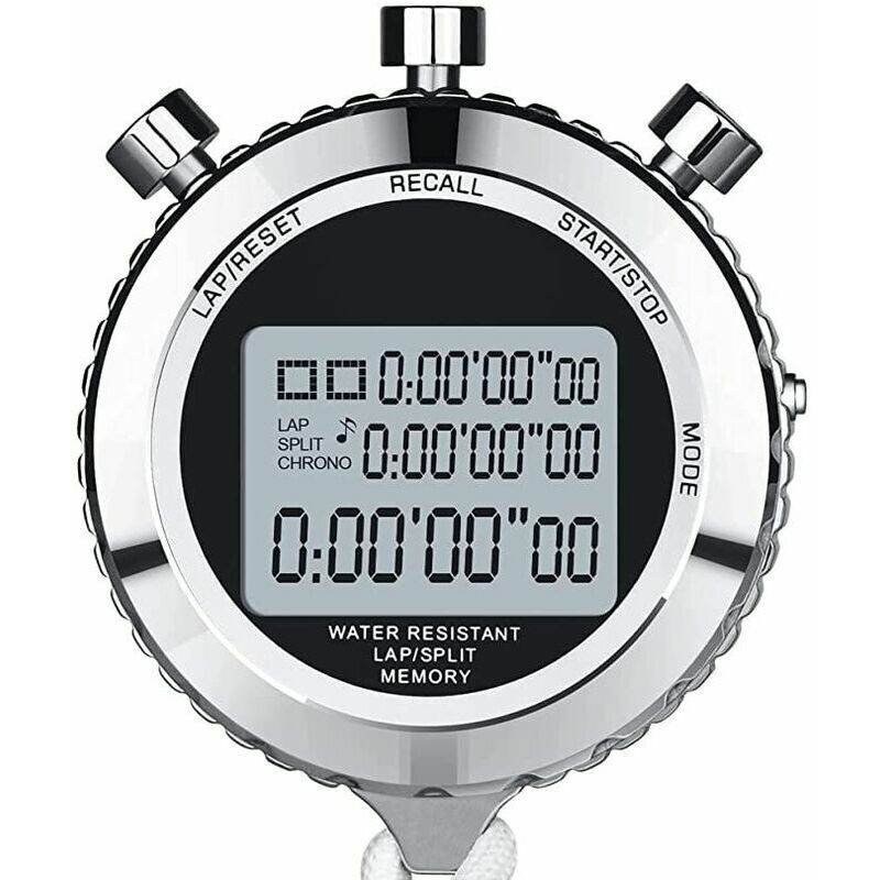Caratteristiche: Funzione silenziosa senza "BEEP" - Cronometro Tvorvik con funzionamento silenzioso, facile passaggio tra modalità silenziosa e normale, niente più BEEP, adatto per test, esami, esperimenti, discorso, classe e tutte le occasioni silenziose. Cronometro digitale in metallo di alta qualità - Realizzato in acciaio inossidabile, resistente, ampio schermo con display a tre righe, può leggere chiaramente il numero. Con cordino, piccolo volume, facile da trasportare, il cronometro include un cordino, puoi tenerlo in mano o al collo. /100 secondi, 100 giri di memoria. Il registratore può riprodurre i segmenti e i segmenti temporali più veloci (FS), più lenti (SL) e medi (AV). Perfetto per la maratona, allenatore, arbitro, ecc. Funzione conto alla rovescia - Il conto alla rovescia massimo fino a 9:59:59, molto utile per il recupero fisico, facile da usare. Imposta questa funzione, il pacchetto include un manuale utente in 2 lingue (inglese e tedesco). Cronometro multifunzione