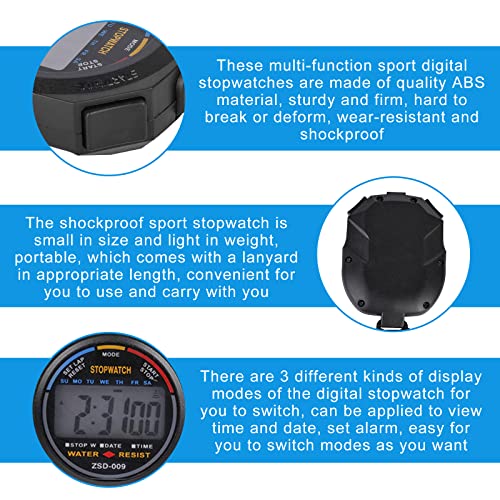 Alta qualità: il cronometro sportivo è realizzato in materiale ABS di alta qualità, che ha una buona durata, resistente all'usura e agli urti, con funzione di temporizzazione, funzione sveglia, funzione orologio. cronometro sportivo può essere applicato a lungo.