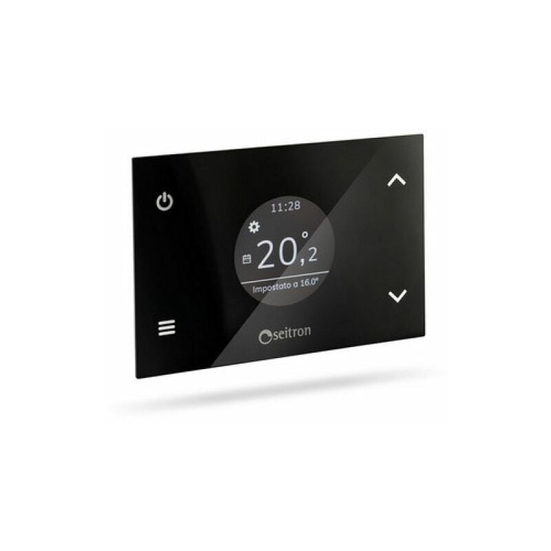 Cronotermostato WiFi da semincasso. Settimanale. Programmabile da Smartphone con App dedicata. Alimentato da rete elettrica. Con rettroilluminazione. Display circolare, 4 pulsanti touch per gestione dal termostato. Alimentazione 100-253V (DianFlex) Bianco