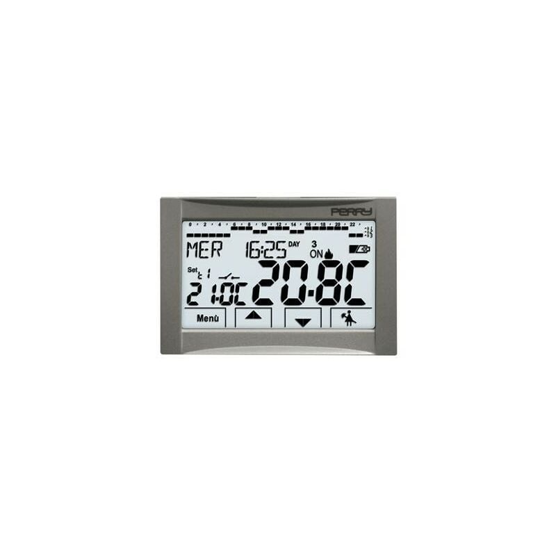 Cronotermostato da incasso Display Retroilluminato Touch screen Completo di Mascherini Bianco Antracite e Tech Alimentazione a batterie (2 Stilo) Display Lcd retroilluminato 4 programmi preimpostati modificabili Programmazione minima 30 minuti Cambio automatico ora legale Tasto sospensione per pulizie Comando EST/INV Montaggio ad incasso Dimensioni (LxPxH) 65 x 53 x 47 mm Per la compatibilita' guarda nella descrizione in basso Compatibile con BTICINO: LivingLight Bianca, Tech e antracite (Light, Light Tech e Living), Matix, Axolute Tech, Axolute Antracite, Axolute Bianca GEWISS: Chorus ONE/LUX/FLAT/GEO Bianca, Chorus ONE/LUX/FLAT/GEO Nera, Chorus ONE/LUX/FLAT/GEO Titanio VIMAR: Plana, Plana Silver, Eikon Grigia, Eikon Next, Eikon Bianca, Arké Bianca, Arké Nera Scarica il manuale
