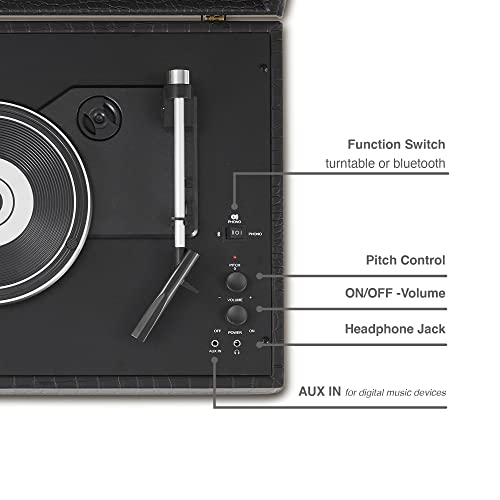 Crosley Mercury Giradischi Vinili con Bluetooth In/out, RCA e Altoparlanti Stereo - Vintage Design Lettore di Dischi a 3 Velocità - Per 7", 10" e 12" - Portatile con Custodia Integrata (Nero Croc)