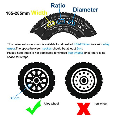 Buon effetto antiscivolo: Ie catene da neve rispondono facilmente a tutti i tipi di cattive condizioni stradali, adatte a pioggia, neve, ghiaccio, fango.