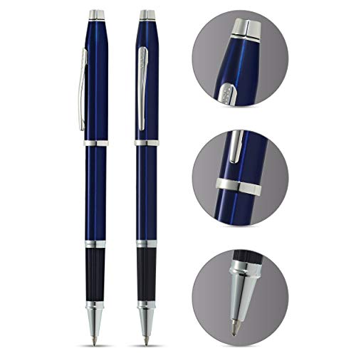 CROSS Century II - Penna a sfera trasparente laccata blu con appuntamenti rodiati, con confezione regalo di lusso, ricaricabile