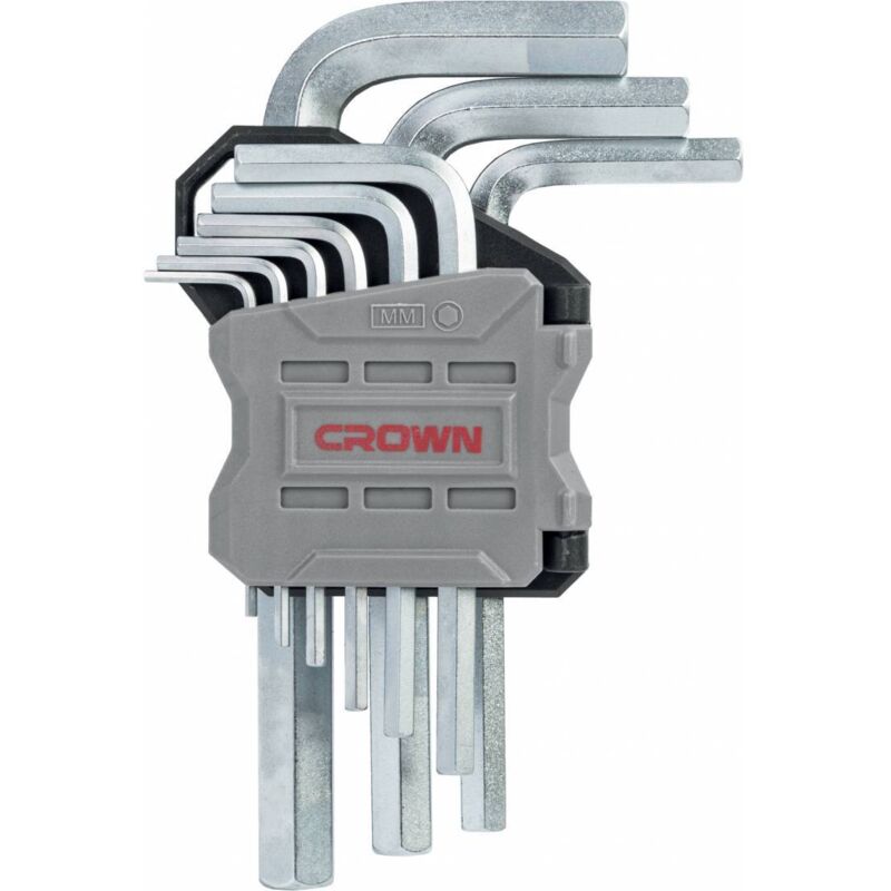 Crown chiave esagonale set 9 pezzi 1.5, 2, 2.5, 3, 4, 5, 6, 8, 10 mm. Finitura cromata.