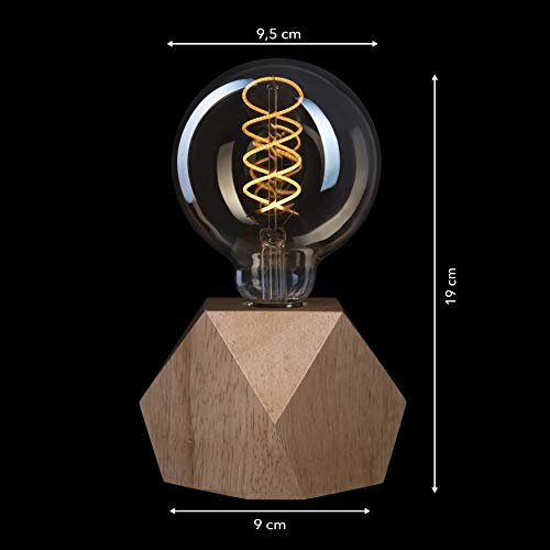 CROWN Lampada LED | Lampada stile vintage a batteria | Attaco E27, incl. Retrò Edison LED Lampadina EL19 | Ricaricabile | Colore: Rovere chiaro | Portatile
