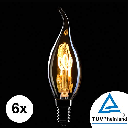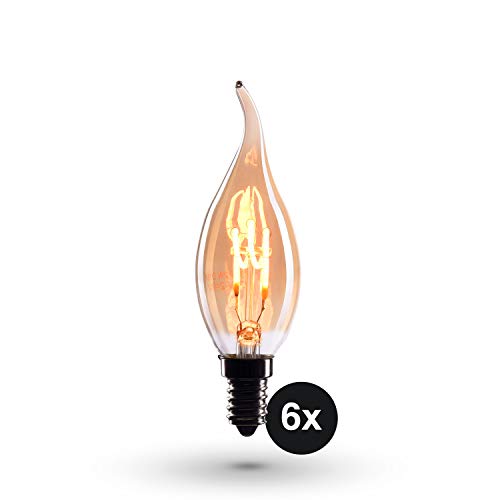 CrownLED 6-Pack Stile Vintage con Attacco E14 | Luce Calda, Dimmerabile, Effetto Filamento Fiamma, Risparmio Energetico, Classe A+ | Illuminazione Retro per La Casa