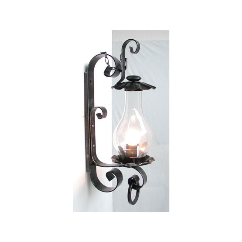 LANTERNA LAMPADA APPLIQUE PLAFONIERA IN FERRO BATTUTO TRENTO altezza cm. 43 ATTACCO LUCI E14 1x60 watt colore Nero Argento c con vetro semplice