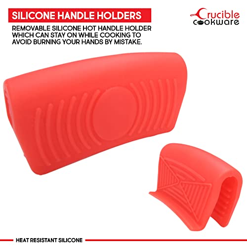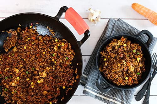 Crucible Cookware Set Wok in ghisa da 14 pollici (Pre-condito), coperchio in vetro e porta maniglie in silicone