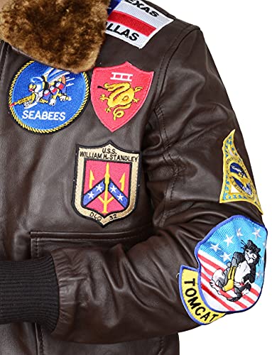 Tom Cruise Multipla Patch G1 Collare di Pelliccia USAAF Aviator Pilot Bomber Giacca In Pelle, Faux marrone scuro, M