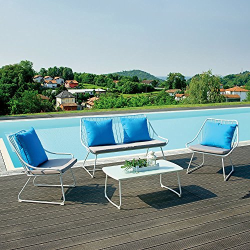 Crumer Set da Giardino Divano 2 Sedie e Tavolino in Alluminio Salento Bianco