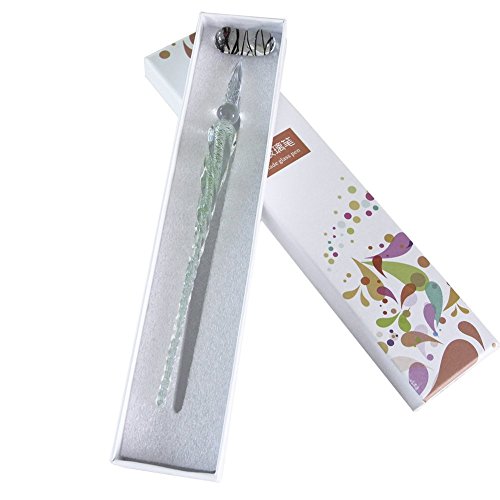 Crystal Glass Dip Pen, Handmade Glass Signature Pen Business Present with a Pen Holder Vintage Elegant Design, Gift Package(Green)