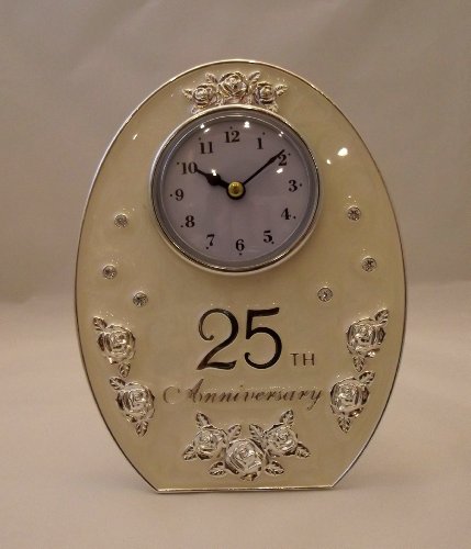 Crystal Glass & Rose Decorated 25th Wedding Anniversary Mantel Clock by Shop of Legends