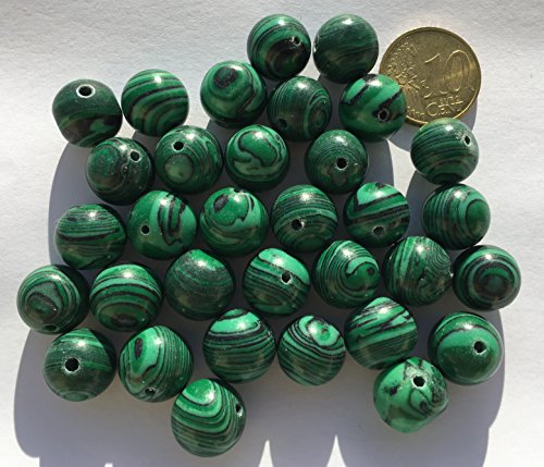 Crystal King Perle/pietre semi-preziose da 12 mm: Ossidiana, Avventurina, giada, onice, occhio di tigre malachite, turchese, quarzo, Quarzo Rosa ecc. per Gioielli Fai Da Te Gioielli, Malachite