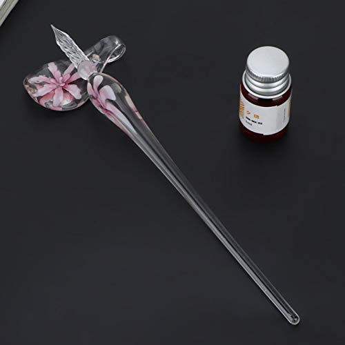 Crystal Dip Pen Penna Stilografica con Penna Penna Penna Dip Flower Glass Dip Pen per Firme Regalo (Rosa)
