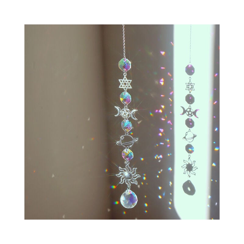 Di cristallo del Vento Carillon Colorato Pianeta Star Luna Metallo Appeso Prismi Luce Catcher Ornamento per la Tenda di Finestra Del Pendente Dei Monili Lampadario Per La Casa giardino Auto Room Decor RegaliCaratteristica:1. Il cristallo di luce cattura ornamento è fatto di K9 di cristallo, che ha avanzato la tecnologia di taglio, impeccabile e buon effetto di rifrazione2. Durable. Questi luce-catching decorazioni sembra fragile e facile da graffiare, ma sono in realtà molto resistente. Difficilmente diventare nuvoloso o perdere la loro lucentezza.3. Di cristallo di luce cattura ornamenti sparkle sotto il sole. Come una luce-catching ornamento appeso alla finestra, questo tipo di luce-catching ornamento produrrà bella riflessione. Quando il sole splende da diverse angolazioni, si riflettono diversi effetti di luce.4. Luce di cristallo catching decorazione è adatto a molte occasioni, come ad esempio di Natale albero Di Natale decorazione, feste, lampadari, le pareti, camerette per