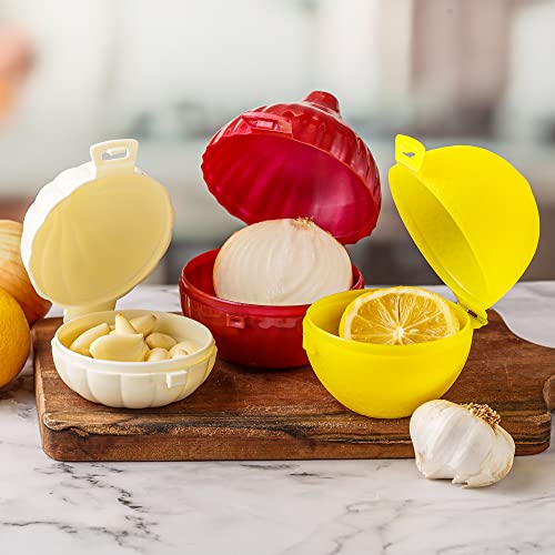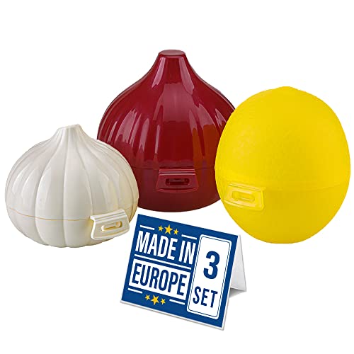 CRYSTALIA Porta Aglio, Cipolla, Salva e Limone da Frigo, Set di 3, 100% SENZA BPA, Contenitore Salvafreschezza in Plastica