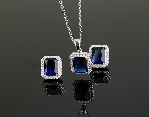Crystalline Azuria Donna 18ct Placcato Oro Bianco Parure con Zaffiro simulato Blu Cristalli di Zirconi Collana con Ciondolo 45 cm Orecchini a Lobo