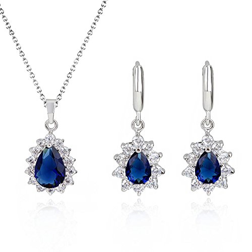 Crystalline Azuria Donna 18ct Placcato Oro Lacrima Zaffiro simulato Blu Cristalli di Zirconi Parure Collana Orecchini Bracciale