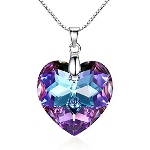 Crystalline Azuria Donna 925 Argento 925 Amore Cuore Cristalli Viola Collana con Ciondolo 40 cm