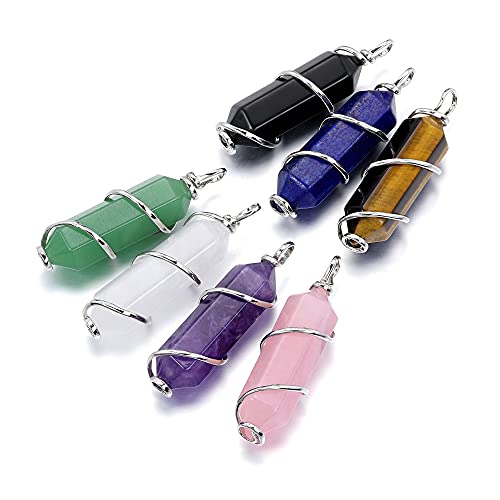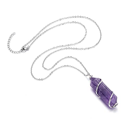CrystalTears Collana con ciondolo a colonna esagonale in cristallo con pietre preziose naturali, regalo fatto a mano con avvolgimento in bronzo argentato per la fidanzata della signora - ametista