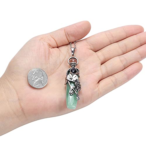 CrystalTears Collana da donna con ciondolo a forma di loto con gemma in stile retrò, da donna, con cristalli curativi reiki fatti a mano, Gemma,