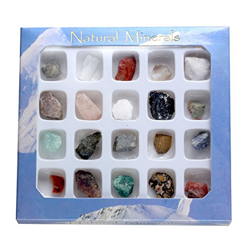 CrystalTears 20 Pezzi di Pietra Grezza Minerale Pietre Naturali Gemme Preziose Kit Scienza Geologica Collezione per Bambini Ragazzi Studente Appassionati di Geologia