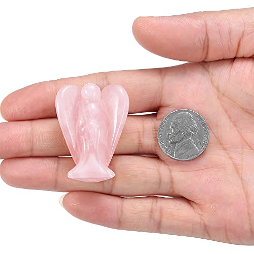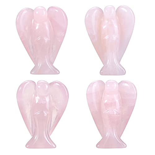 CrystalTears Statua Intagliata a Forma di Angelo in Quarzo Rosa Pietra Naturale Chakra Angelo Custode Casa Portafortuna Reiki e Fengshui
