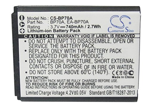 CS-BP70A Batteria 740mAh compatibile con [Samsung] AQ100, DV100, DV101, DV150, DV150F, DV90, EC-MV800ZBPBUS, EC-PL120ZBPBUS, EC-SL50ZZBPBUS, EC-ST65ZZBPUUS, EC-ST95ZZBPBUS, ES30, ES65, ES67, ES70, ES