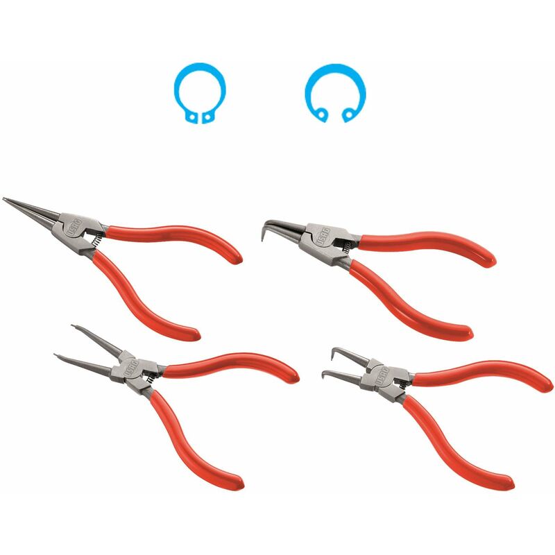 SERIE 4 PINZE PER ANELLI ELASTICI USAG 127 C/SE4 � Modello standard � Punte e becchi in corpo unico � Becchi conici per la massima accessibilit� � Manici rivestiti in PVC � Esecuzione verniciata trasparente