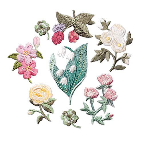 Set di toppe termoadesive: il set contiene 7 tipi di toppe termoadesive con motivi diversi, ognuna con 1 pezzo per un totale di 7 pezzi. Sono mughetto, rosa bianca, lampone, rosa, quadrifoglio, rosa gialla e fiore di ciliegio.