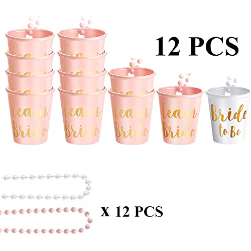 Csirnto Collana di Colpo Vetro 12 Pezzi Team Bride Bride To Be Collana Plastica Collana di Bicchierini con Foglia d'Oro 1 Pezzo Bianco + 11 Rosa per Collane di Addio al Nubilato Decoracion