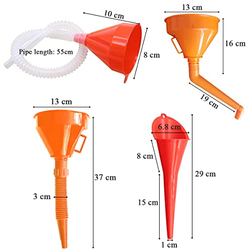 Ampio utilizzo: gli imbuti sono adatti per l'aggiunta di cherosene, petrolio, benzina, olio motore o cambio olio, ideali per uso domestico o automobilistico.