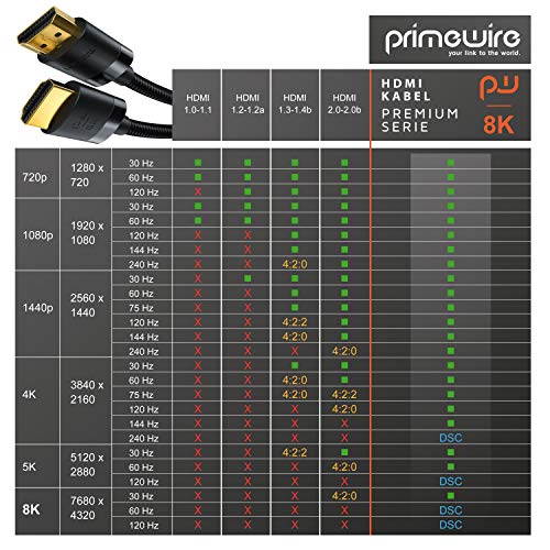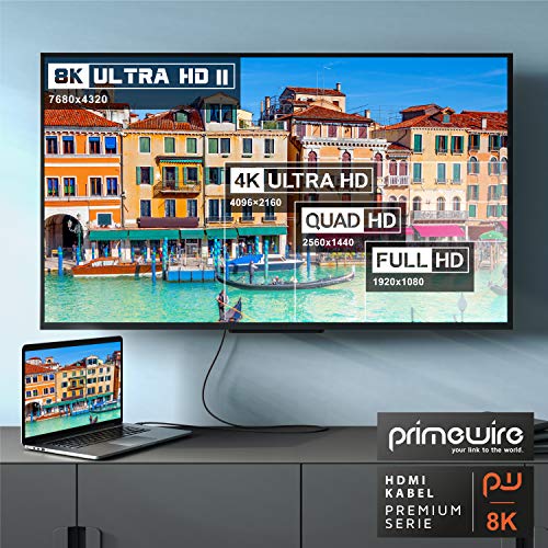 Benvenuti nell'era di 8 K. Goditi video HD e segnali audio digitali di alta qualità! Il cavo HDMI a prova di futuro è conforme alla specifica HDMI 2.1 e trasmette immagini in eccellente risoluzione: fino a 7680 x 4320 @ 120 Hz (con DSC) e 7680 x 4320 @ 30 Hz (senza DSC). La larghezza di banda è fino a 48 Gbps. Perfetto per tutti i dispositivi HDMI come TV 4K e 8K, PlayStation 4 Pro, PS5, XboX One X e S, lettore Blu-ray 4k