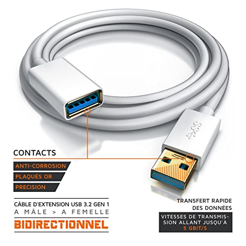 CSL-Computer Cavo di prolunga USB 3.0 da femmina a maschio, fino a 5 Gbit / s, doppia schermatura 1 Metro Bianco