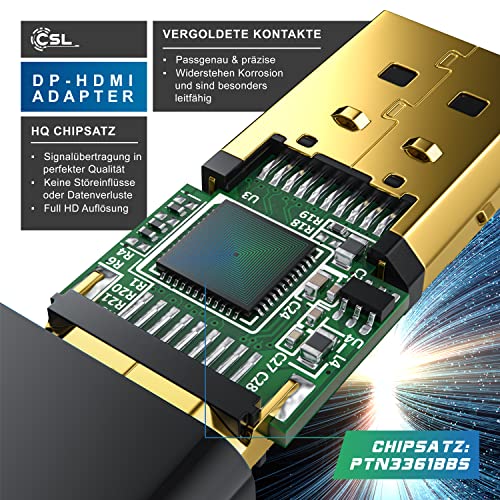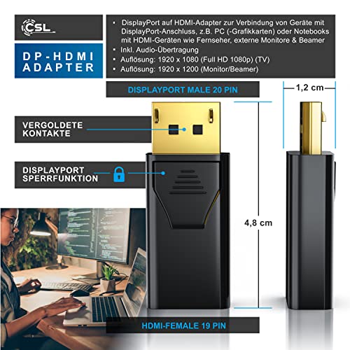 CSL-Computer Displayport, Adattatore HDMI, Full HD 1080P, Incluso Trasmissione Audio.