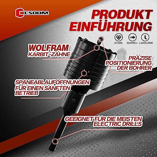 CSOOM Seghe a tazza per calcestruzzo, in metallo duro, con 2 punte di centraggio, 110 mm, SDS Plus, per fori in calcestruzzo, muratura e pietra, trapano per muratura (corona da 82 mm)