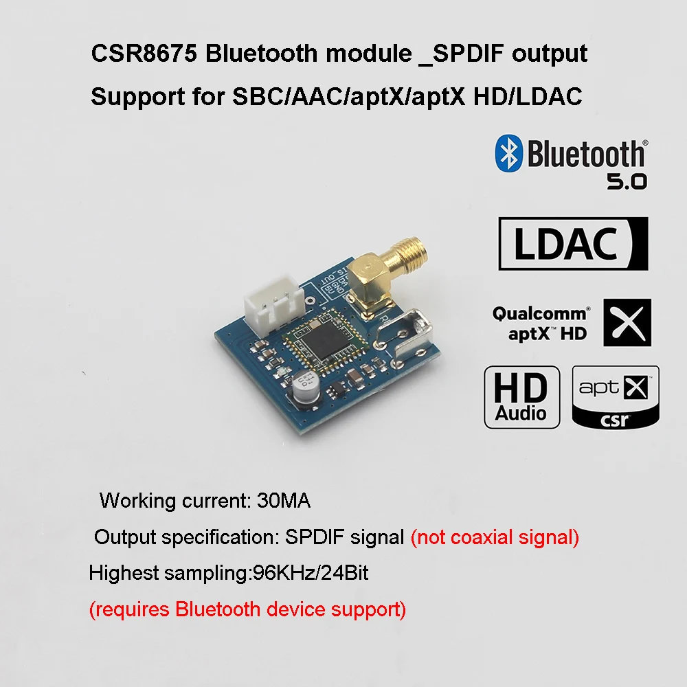 CSR8675 Bluetooth Audio Module Low Power Bluetooth 5.0 Receiver LDAC Lossless SPDIF for AK4493