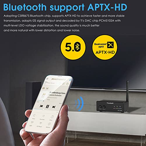 Adottando chip Bluetooth CSR8675, supporta APTX-HD per garantire la trasmissione più veloce e più stabile, adotta l'uscita del segnale I2S e decoded by TI's DAC chip PCM5102A con stabilizzazione del voltaggio LDO multi-livello, la qualità del suono è migliore e più naturale con bassa distorzione e bassa ISE.